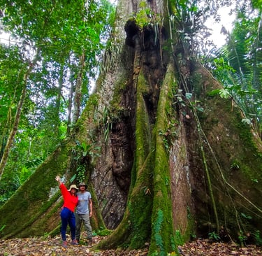 Our journey begins with a visit to the Great Millennial Ceibo Tree, a specimen that is over 400 years old. This gigantic tree is approximately 50 meters tall, which is comparable to the height of the Tower of Babel. It would take 27 to 29 people to completely encircle it.
