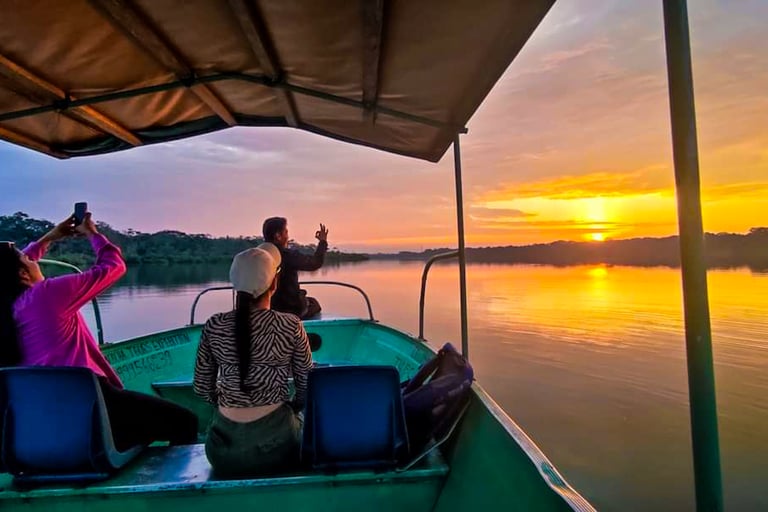 While sailing on Limoncocha Lagoon, we will enjoy an amazing sunset where you can take advantage of the moment to take selfies with one of the most iconic landscapes of the Ecuadorian Amazon. We invite you to check out our gallery where our customers have posted their best photos.