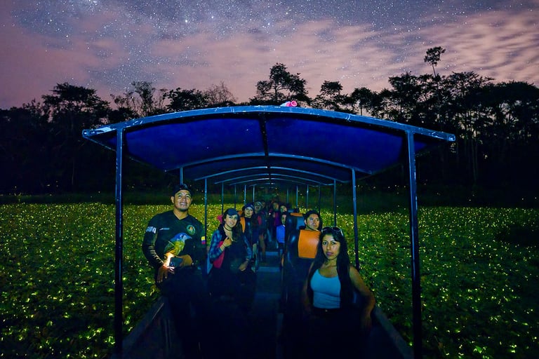 At nightfall, the lagoon will be lit up by a blanket of fireflies that will adorn the waters where we will sail. The scene is similar to enjoying a starry night. Another fascinating moment where you can photograph this natural spectacle.